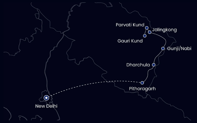 It is a sacred Himalayan pilgrimage to Adi Kailash (Chhota Kailash), the abode of Lord Shiva, and Om Parvat, known for its natural snow ‘ॐ’ formation.